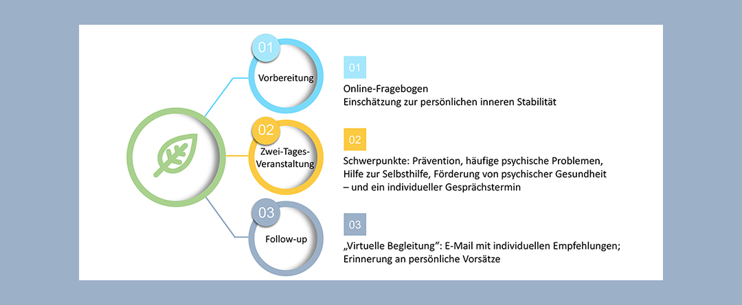 In unserer Zwei-Tages-Veranstaltung lernen Sie Ansätze zur Vorsorge kennen sowie praktische Möglichkeiten, um die eigene psychische Gesundheit zu stärken.